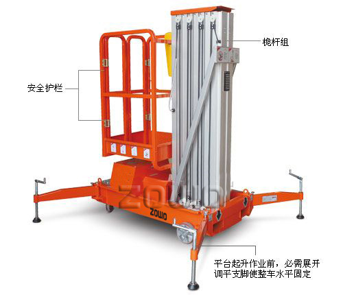 ·升降桅柱全部(bù)用高強度鋁合(hé)金型材,整機重(zhòng)量輕,移動十🙇🏻分(fen)輕便;